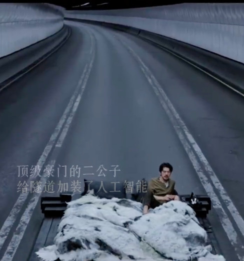 香港豪门贩毒集团掌门人次子李雾童(金城武饰),在黑暗中吐出一个词“light”,接着一排灯“啪啪啪啪”亮起,瞬间照亮了一个隧道。道路的中央,赫然摆着一张盖着真毛被子的床,李雾童在床上摆着pose抽着烟,人工智能的语音随之响起:“早上好,李先生。”(时间背景是1994年,AI唤醒略突兀。)